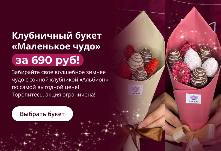 В случае если клубничный букет необходимо сохранить в изначальном виде до момента вручения, следует убрать его в прохладное место (+3…+6 градусов).