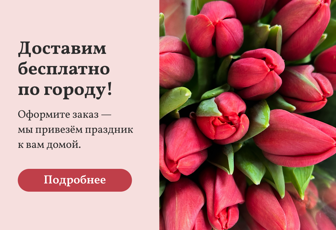 Доставим букет бесплатно по городу. Стоимость в отдаленные районы уточняйте на карте с зонами доставок.