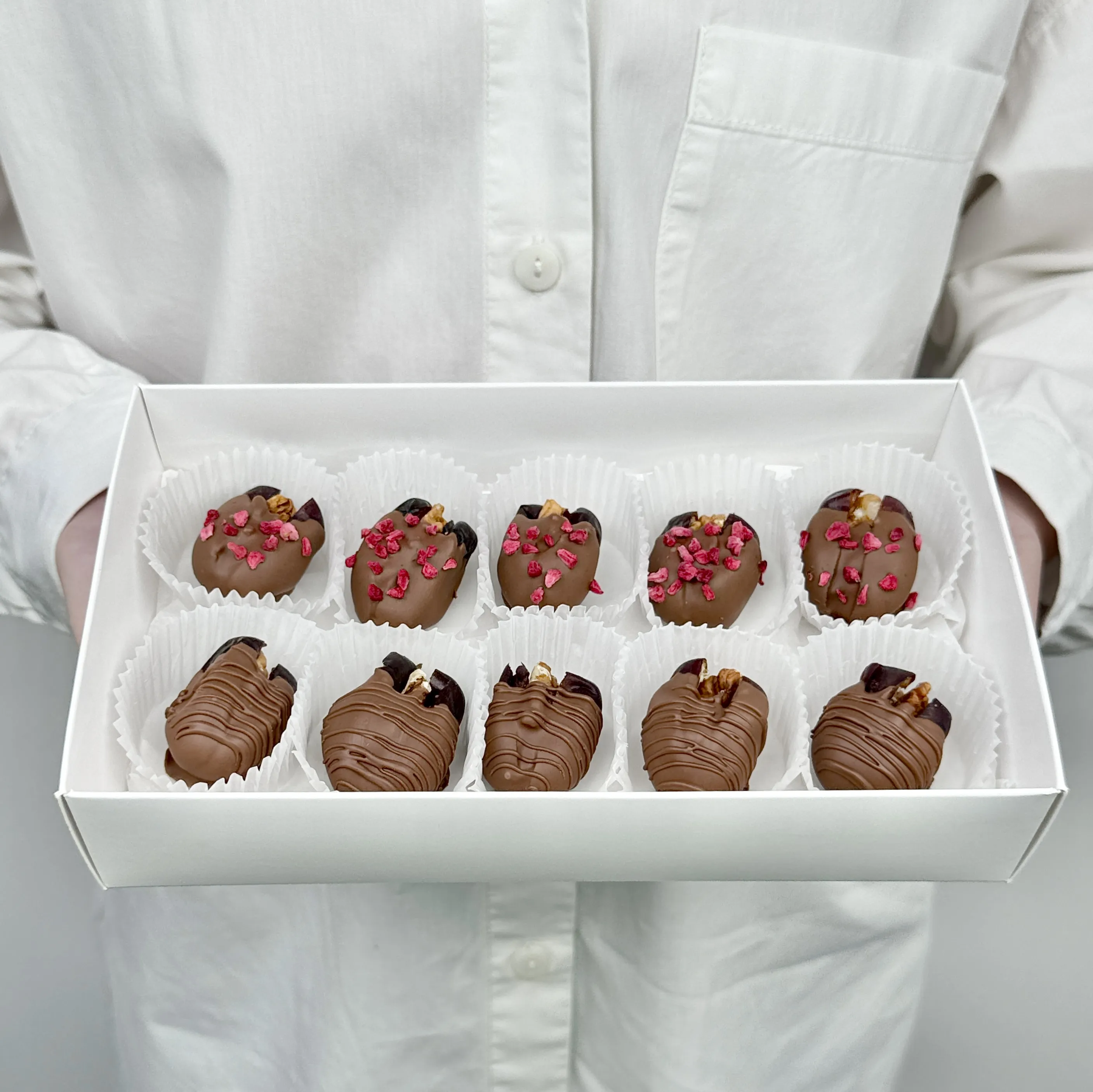 Мы собираем клубничные букеты по весу, а не по штукам. Количество, форма и размер ягод могут отличаться — ведь каждая ягода уникальна.