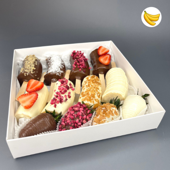 Свежие бананы в бельгийском шоколаде — идеальный способ выразить чувства: ко дню рождения, годовщине, 8 Марта, 14 Февраля, Дню матери, Дню учителя, Дню бабушки и дедушки или просто в знак внимания и заботы.