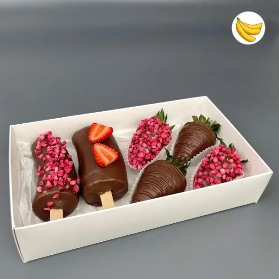 Коробочка бананов в шоколаде — отличный подарок бабушке, маме, любимой женщине, жене, подруге, сестре, друзьям и коллеге.