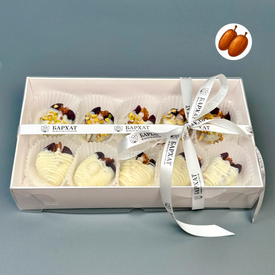 НОВИНКА! Восточная роскошь нового десерта в белом исполнении: медовые финики, укутанные в фирменный шоколадный купаж.