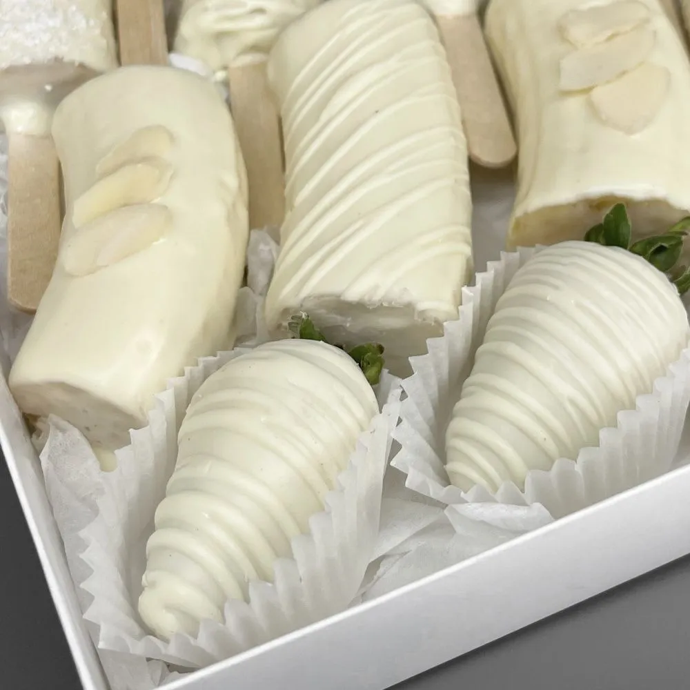 Мы собираем клубничные букеты по весу, а не по штукам. Количество, форма и размер ягод могут отличаться — ведь каждая ягода уникальна.
