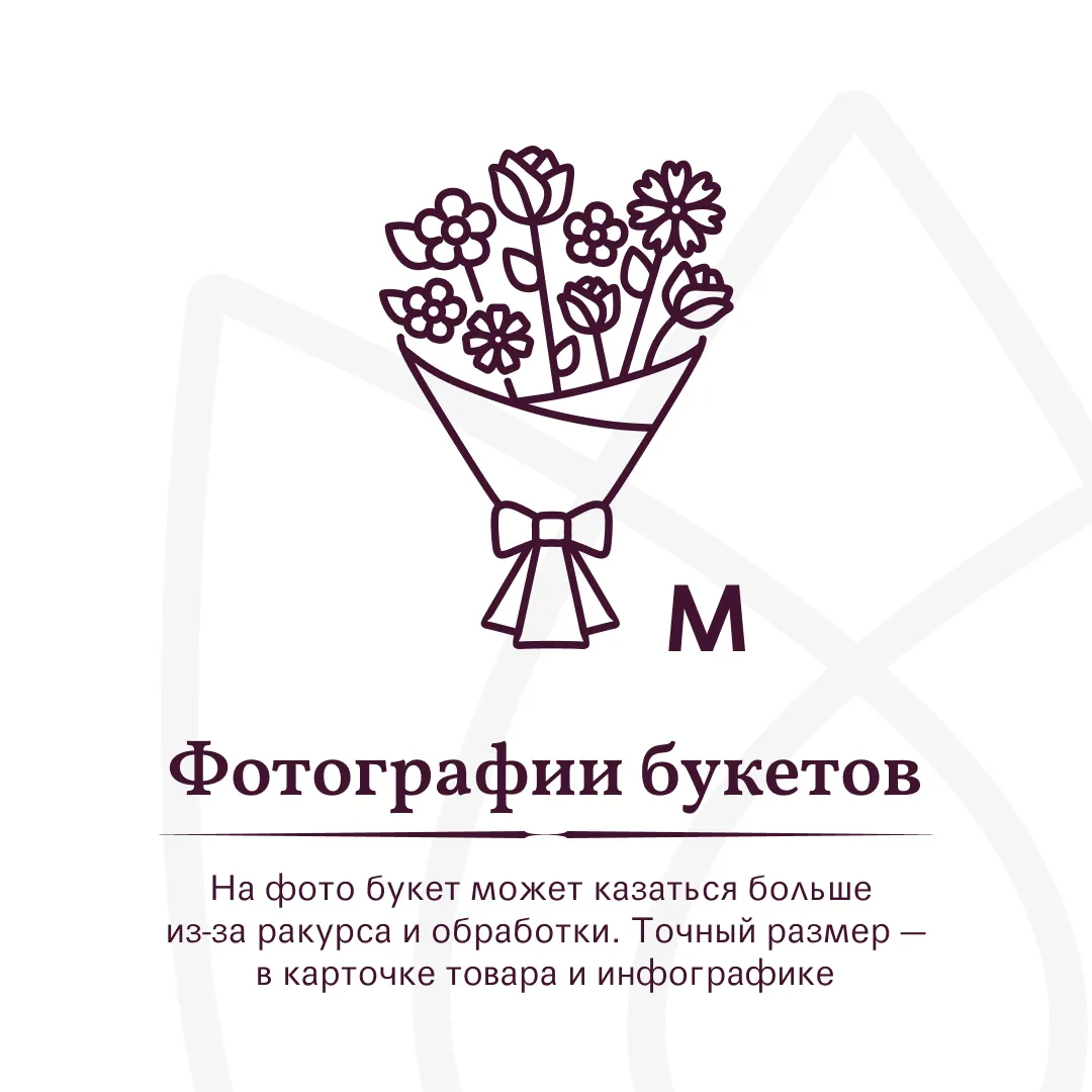 *Обратите внимание: изображение в карточке товара носит иллюстративный характер — реальный букет может незначительно отличаться от фото (например, по оттенкам цветов, форме и сборке). Точные размеры букета указаны в карточке товара.