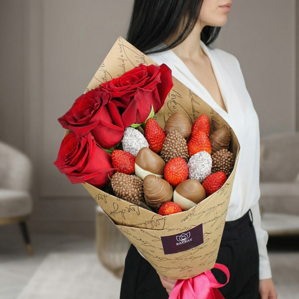 Клубничный букет с розами