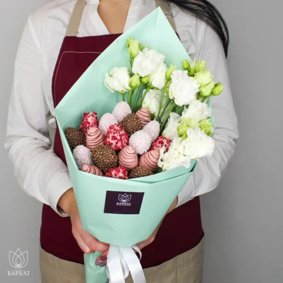 Этот букет — идеальный способ выразить чувства: ко дню рождения, годовщине, 8 Марта, 14 Февраля, Дню матери, Дню учителя, Дню бабушки и дедушки или просто в знак внимания и заботы. Букет из клубники и цветов — съедобный букет — отличный подарок бабушке, маме, любимой женщине, жене, подруге, сестре, друзьям и коллеге.