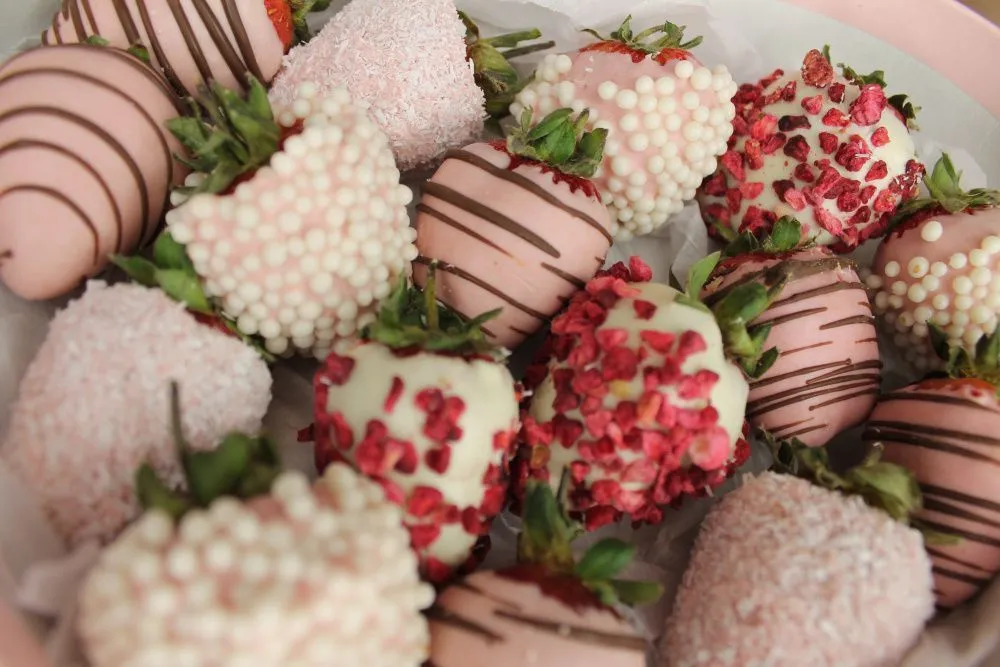 Мы собираем клубничные букеты по весу, а не по штукам. Количество, форма и размер ягод могут отличаться — ведь каждая ягода уникальна.