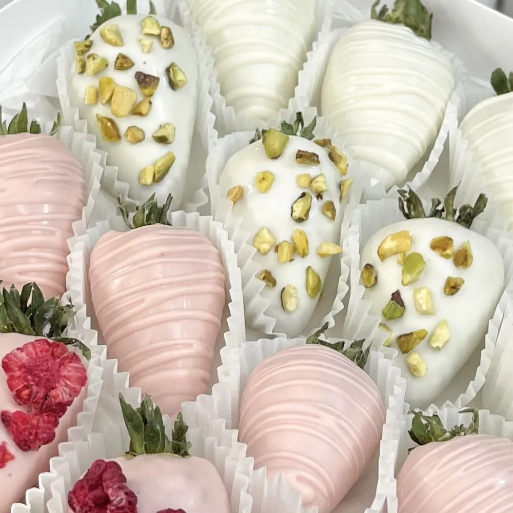 Мы собираем клубничные букеты по весу, а не по штукам. Количество, форма и размер ягод могут отличаться — ведь каждая ягода уникальна.