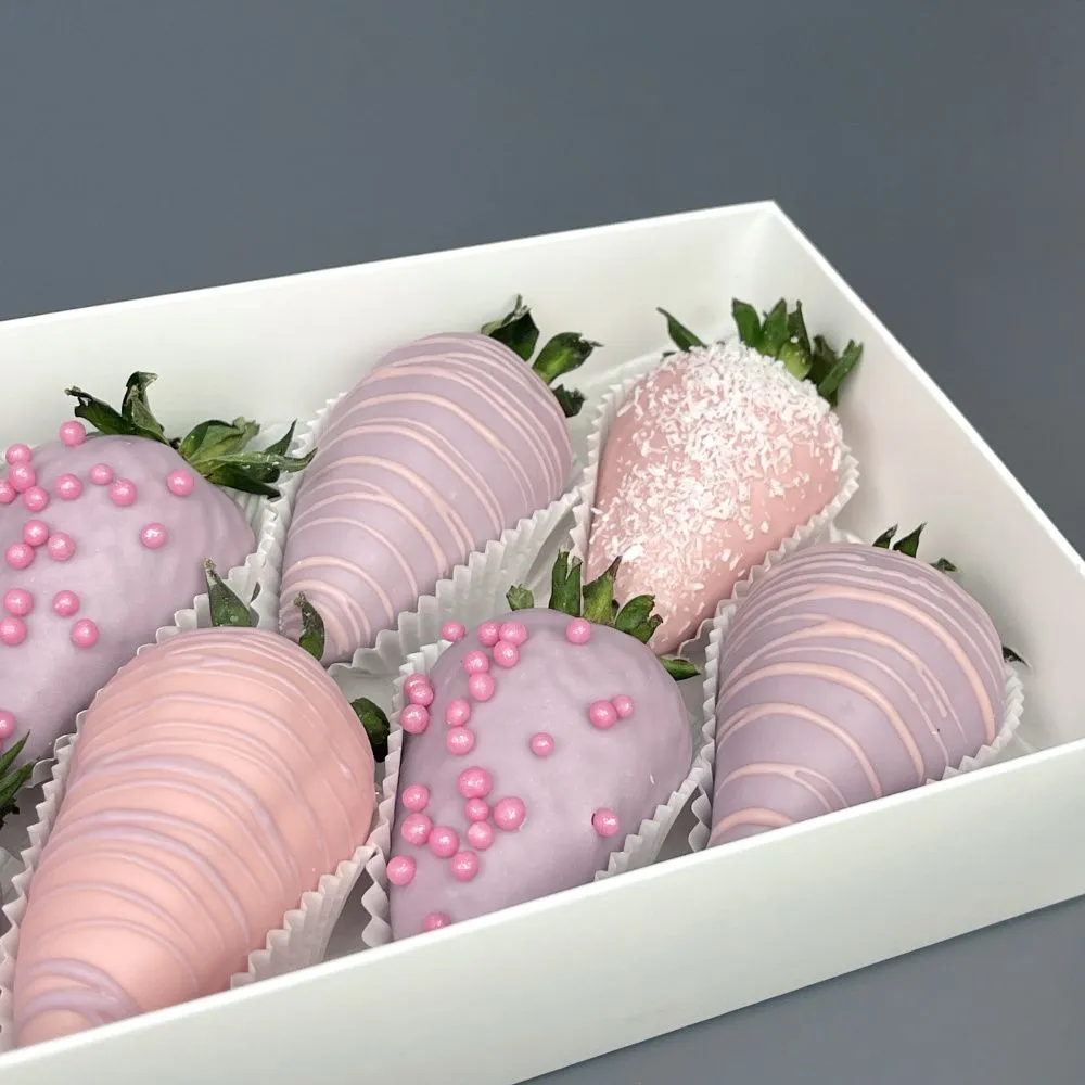 Мы собираем клубничные букеты по весу, а не по штукам. Количество, форма и размер ягод могут отличаться — ведь каждая ягода уникальна.