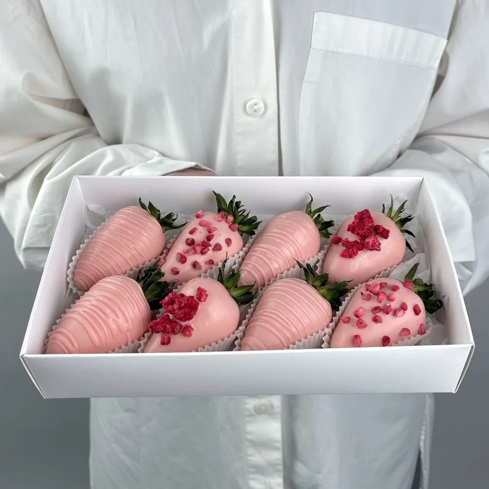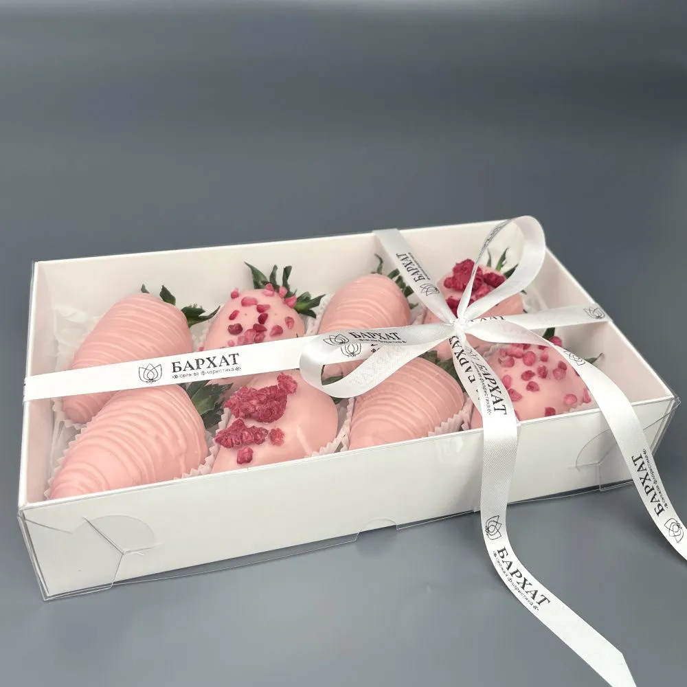 Мы собираем клубничные букеты по весу, а не по штукам. Количество, форма и размер ягод могут отличаться — ведь каждая ягода уникальна.