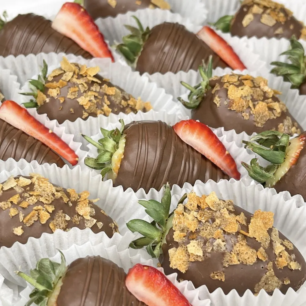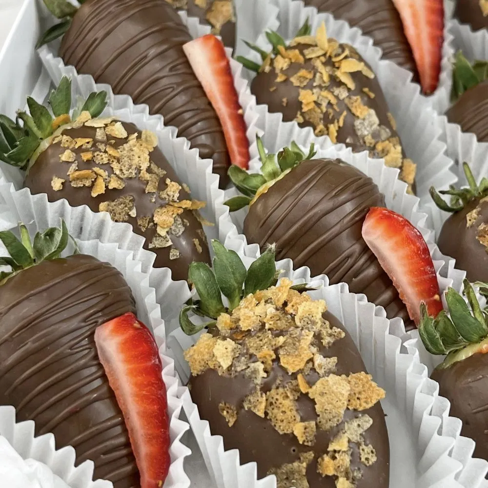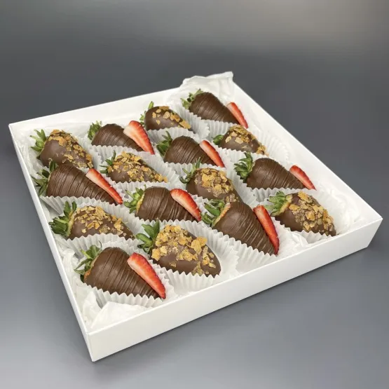 Мы собираем клубничные букеты по весу, а не по штукам. Количество, форма и размер ягод могут отличаться — ведь каждая ягода уникальна.