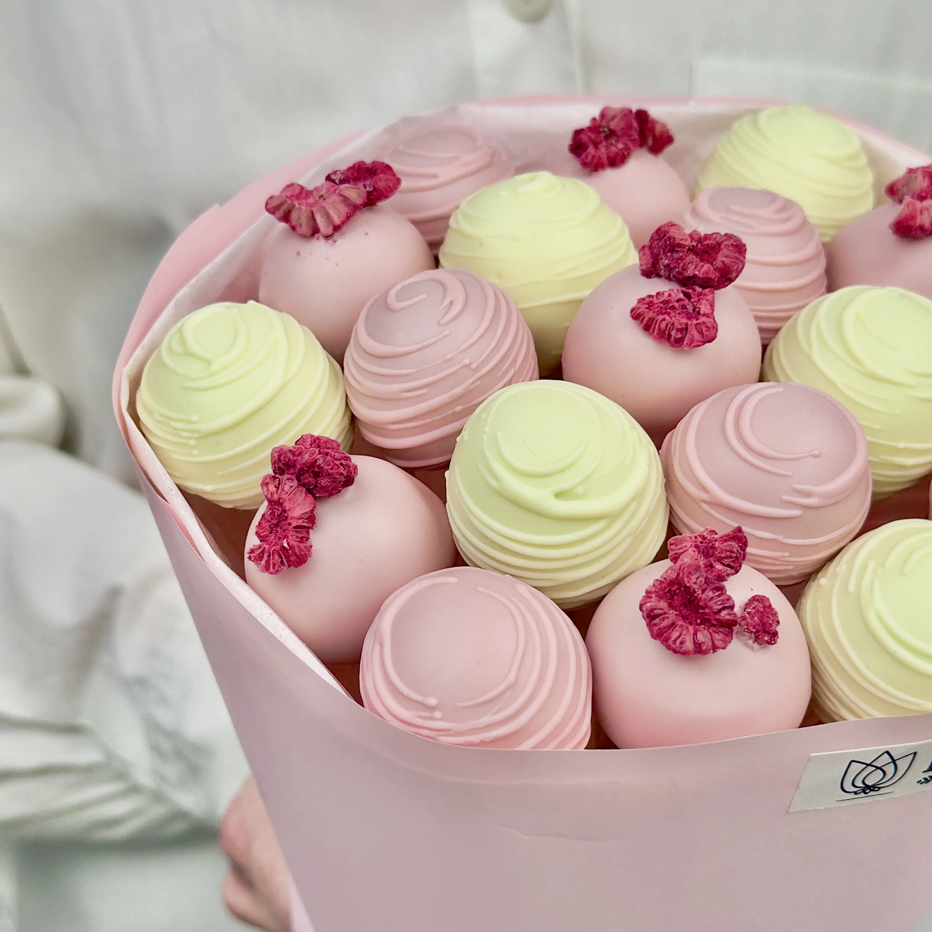 Мы собираем клубничные букеты по весу, а не по штукам. Количество, форма и размер ягод могут отличаться — ведь каждая ягода уникальна.