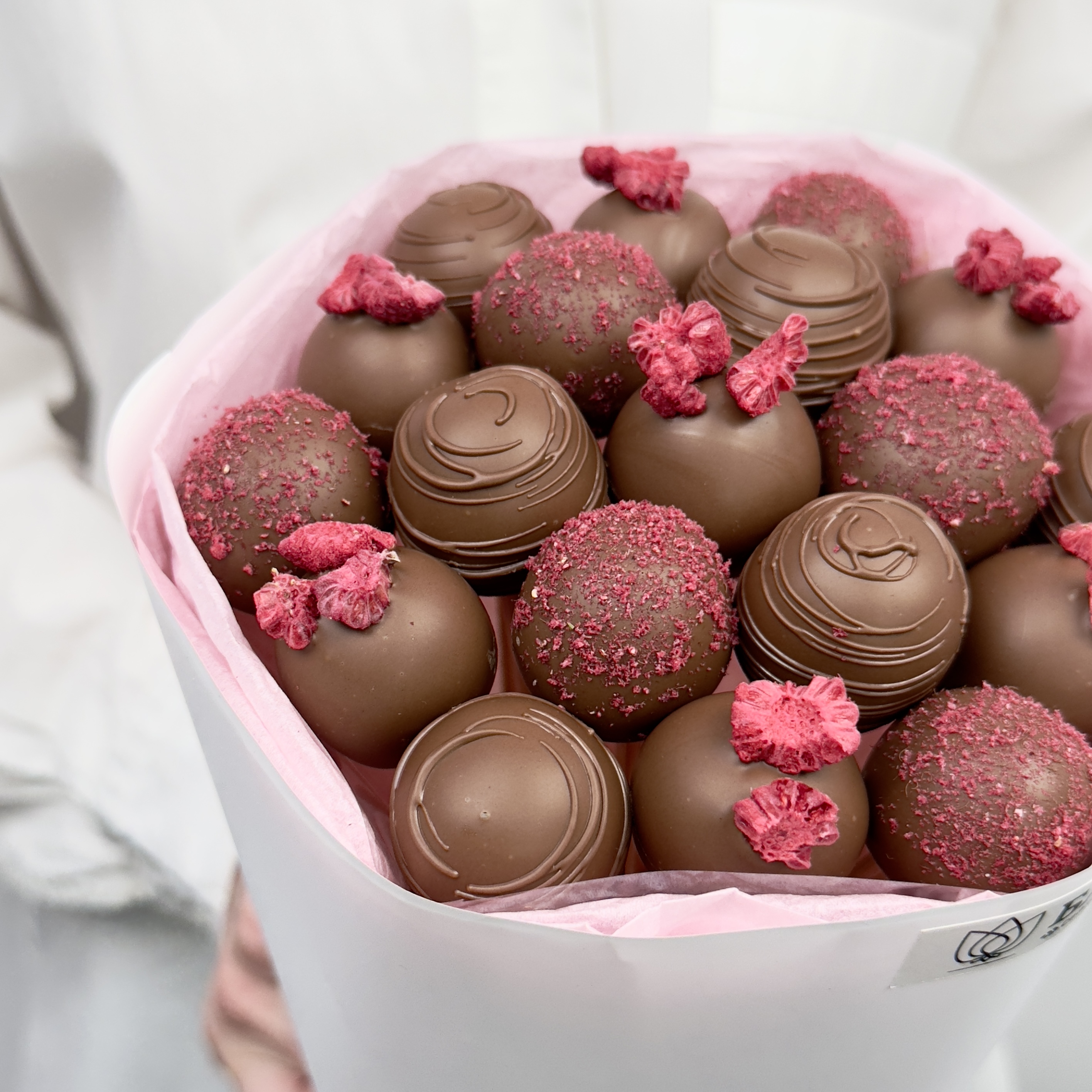 Мы собираем клубничные букеты по весу, а не по штукам. Количество, форма и размер ягод могут отличаться — ведь каждая ягода уникальна.