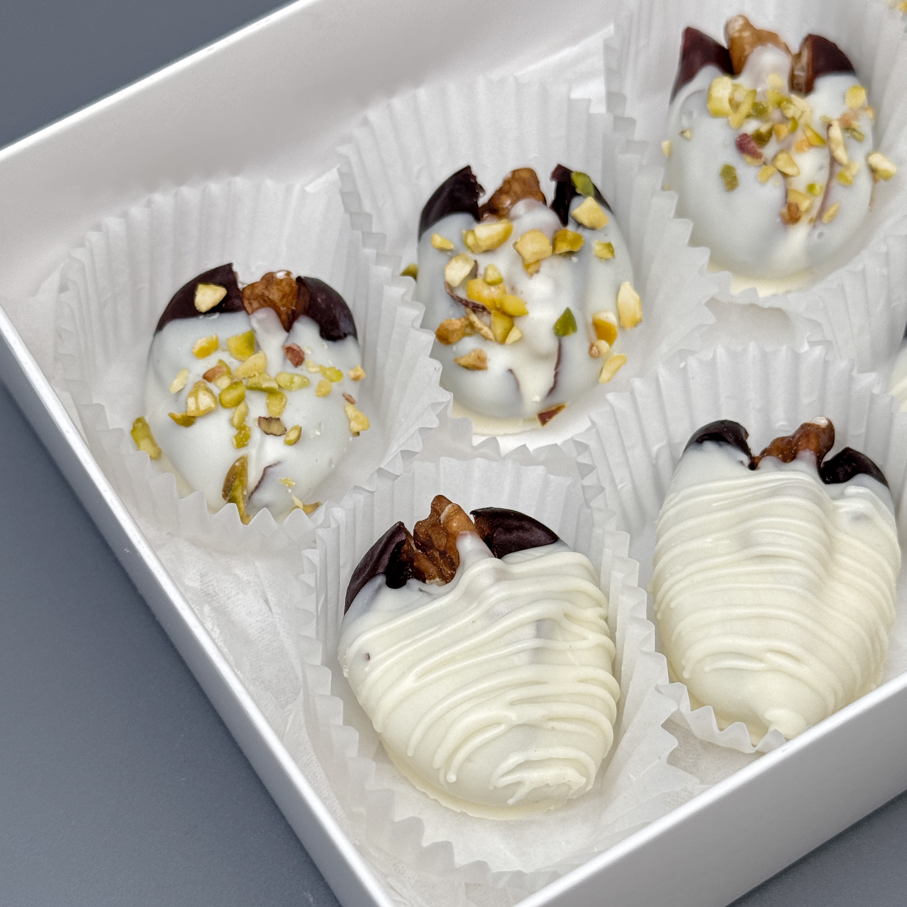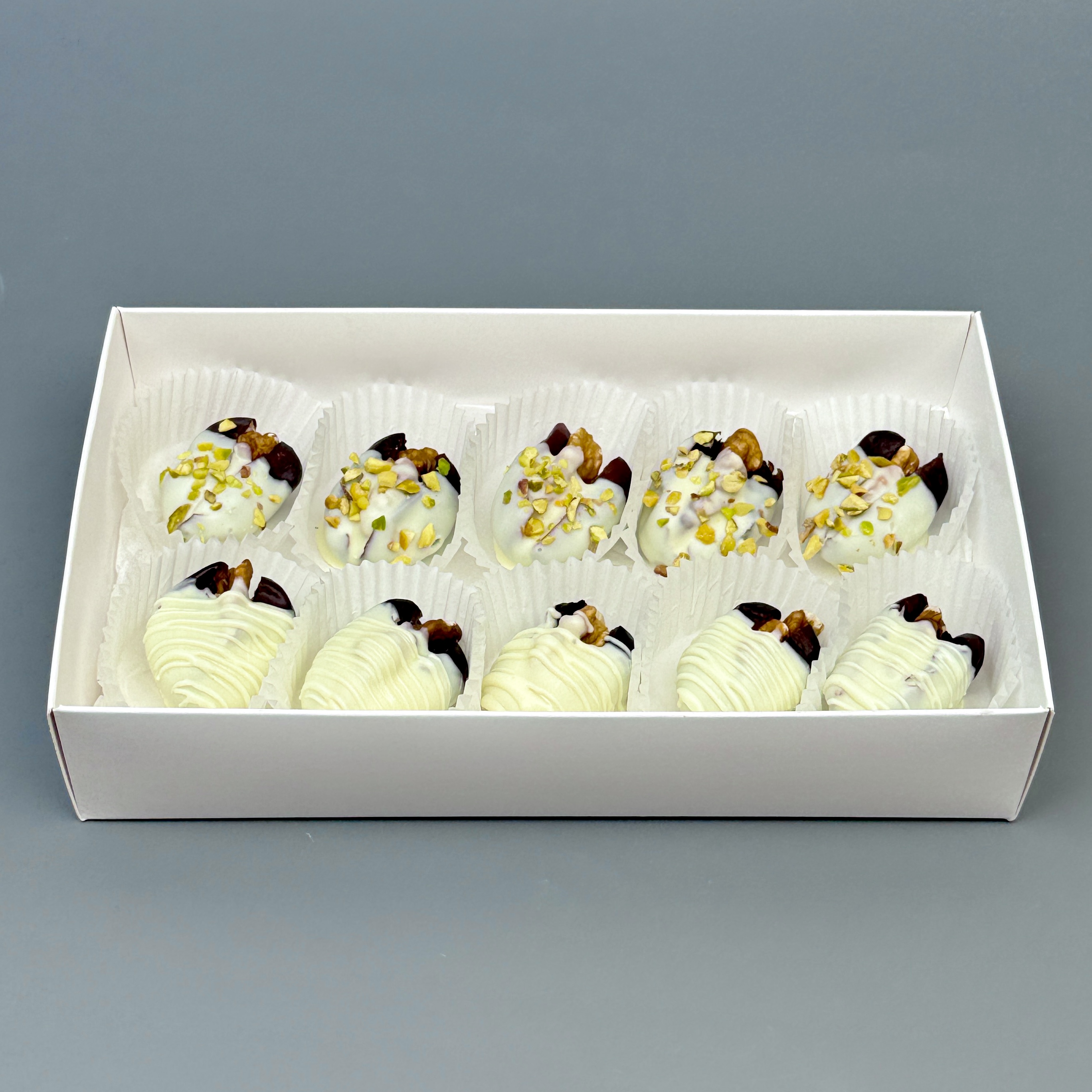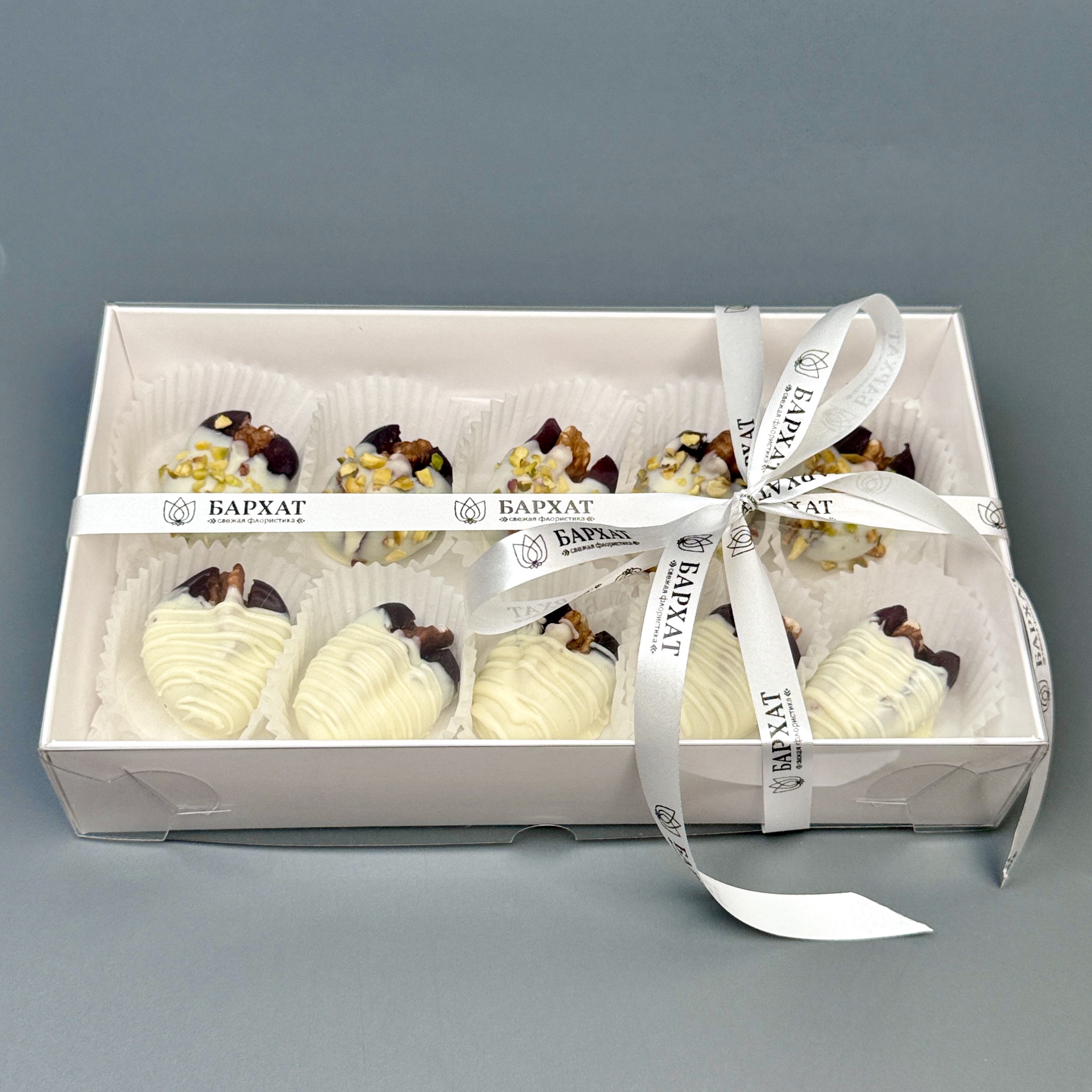 Мы собираем клубничные букеты по весу, а не по штукам. Количество, форма и размер ягод могут отличаться — ведь каждая ягода уникальна.