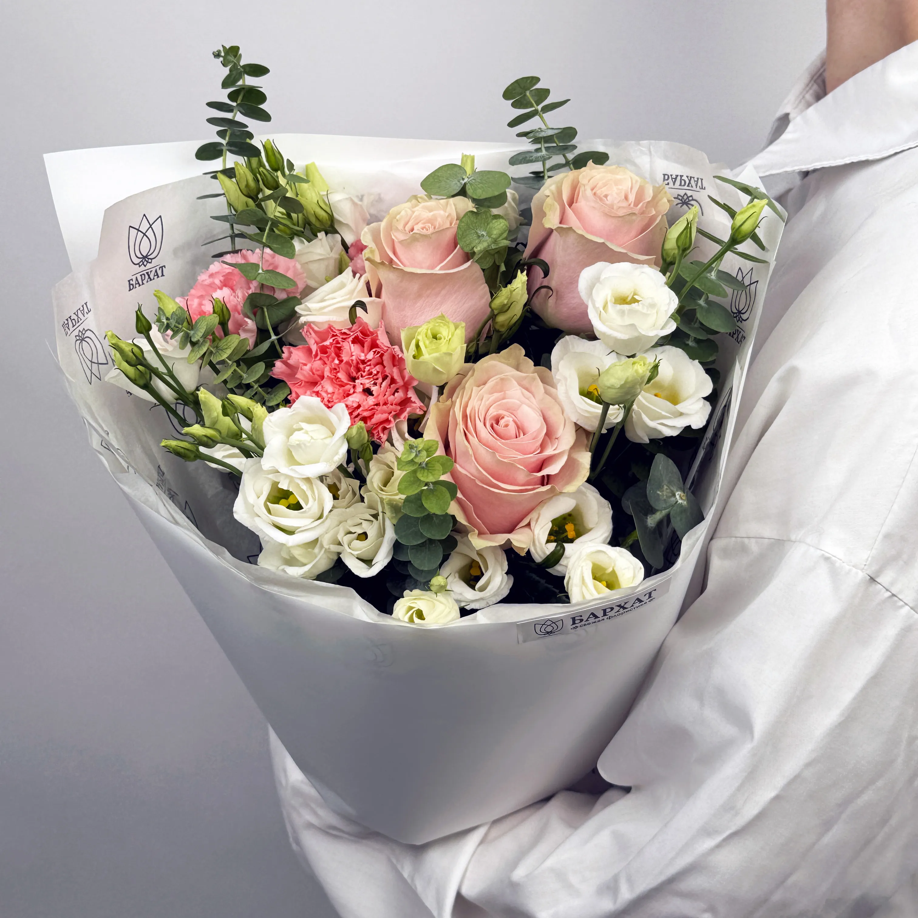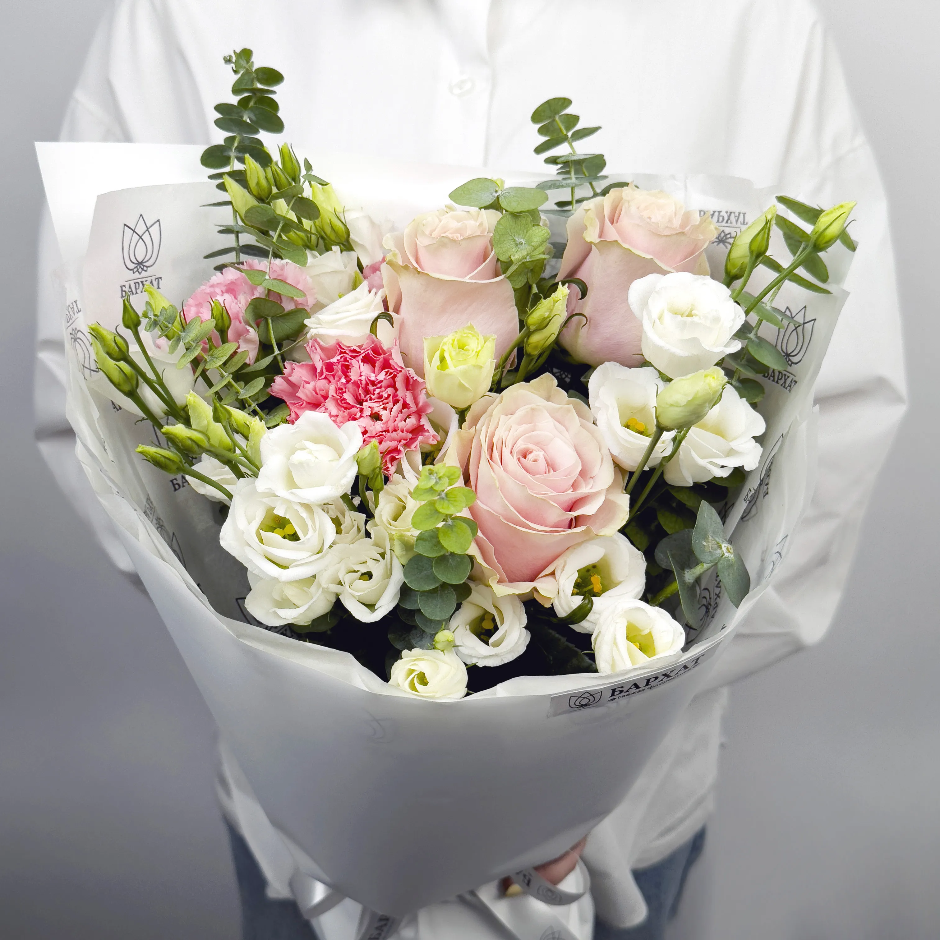 Сорт и оттенок могут незначительно отличаться — если нужных цветов не будет, флорист подберет подходящую замену.