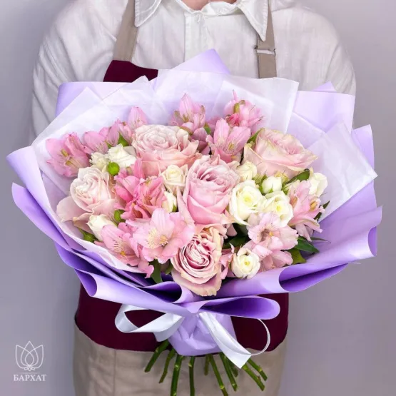 Мы стараемся собрать букет максимально похожим на фото. Возможны небольшие отличия в оттенках.