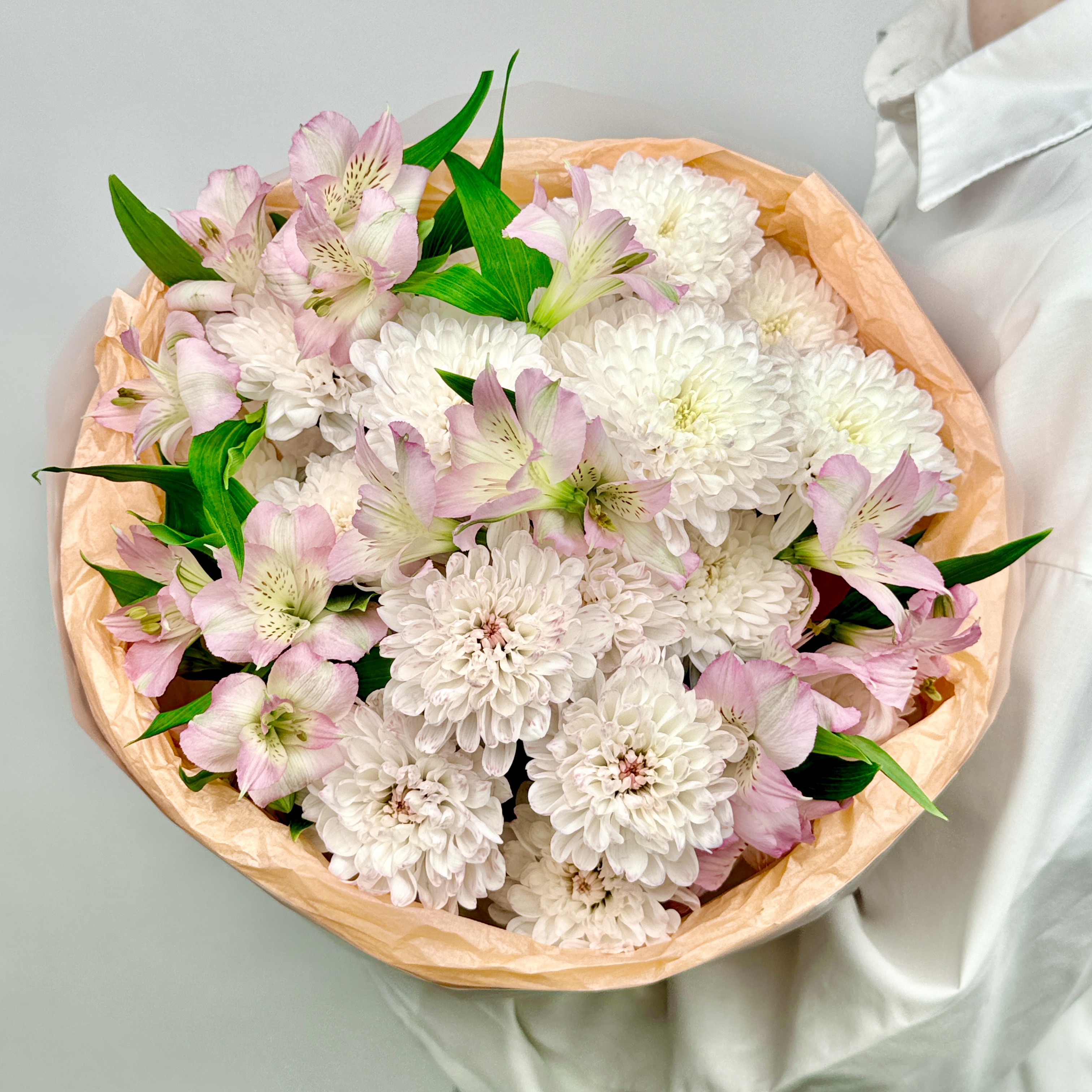 Сорт и оттенок могут незначительно отличаться — если нужных цветов не будет, флорист подберет подходящую замену.