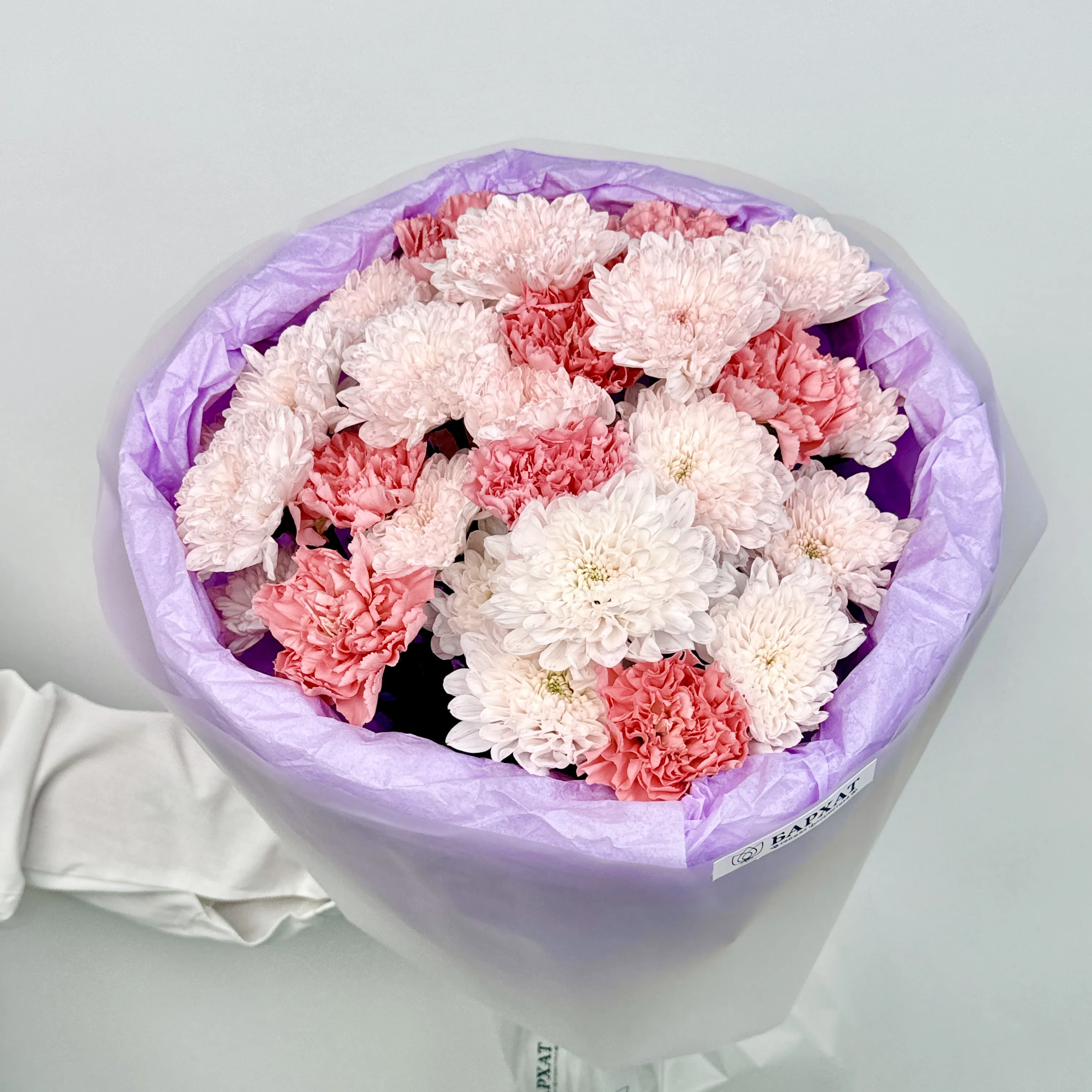 Мы стараемся собрать букет максимально похожим на фото. Возможны небольшие отличия в оттенках.