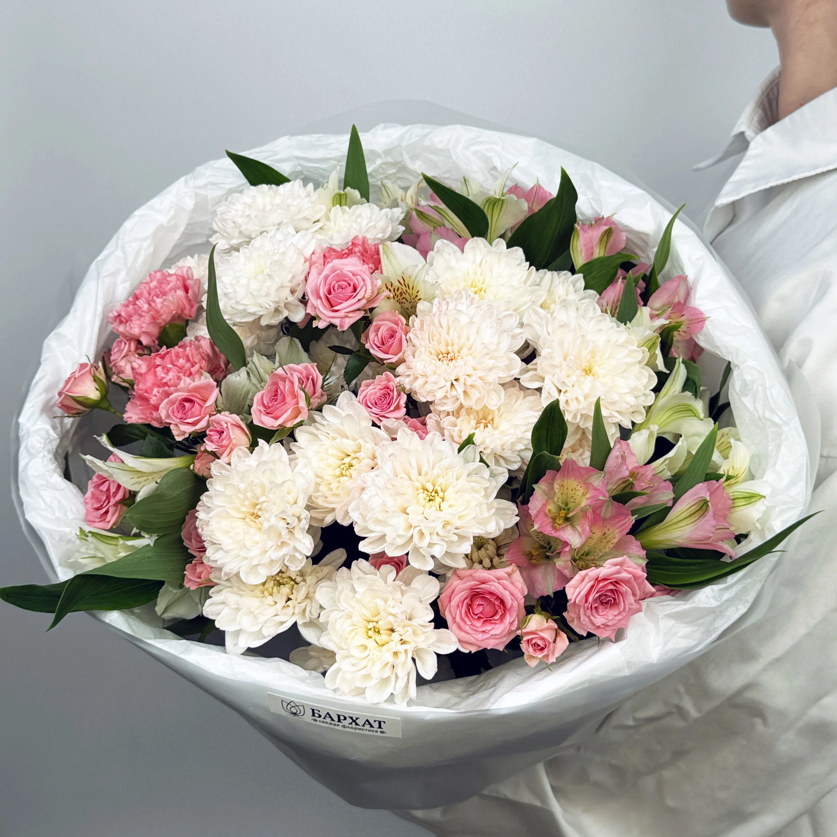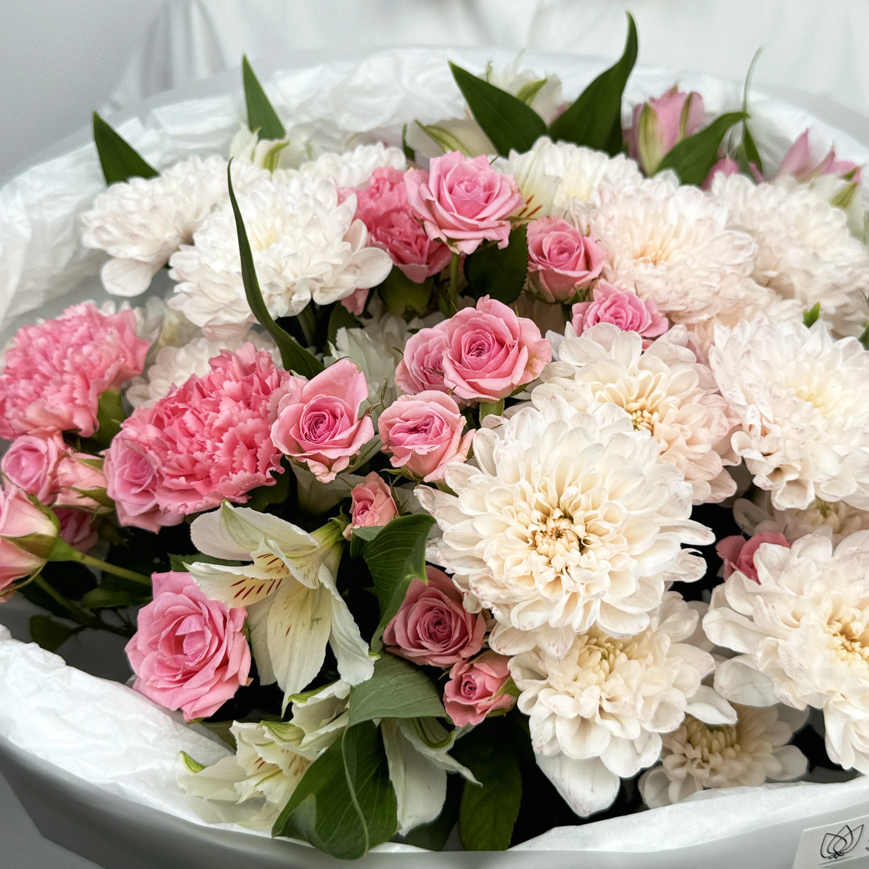Букет из свежих цветов — идеальный способ выразить чувства: ко дню рождения, годовщине, 8 Марта, 14 Февраля, Дню матери, Дню учителя, Дню бабушки и дедушки или просто в знак внимания и заботы. Фирменная открытка-инструкция по хранению — в подарок. Цветочный букет — отличный подарок бабушке, маме, любимой женщине, жене, подруге, сестре, друзьям и коллеге.