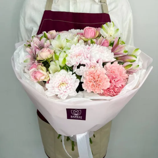 Букет из свежих цветов — идеальный способ выразить чувства: ко дню рождения, годовщине, 8 Марта, 14 Февраля, Дню матери, Дню учителя, Дню бабушки и дедушки или просто в знак внимания и заботы. Фирменная открытка-инструкция по хранению — в подарок.