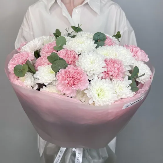 Мы стараемся собрать букет максимально похожим на фото. Возможны небольшие отличия в оттенках.
