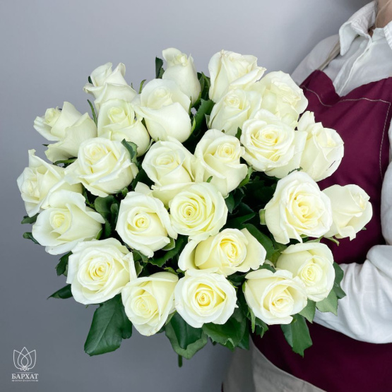 Букет из 25 белых роз под ленту