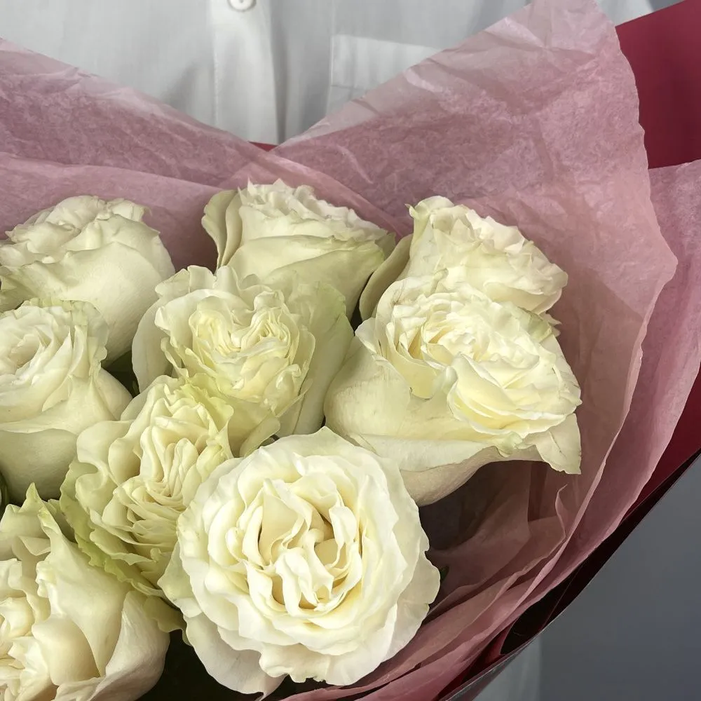 Сорт и оттенок могут незначительно отличаться — если нужных цветов не будет, флорист подберет подходящую замену.