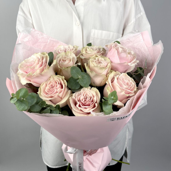 Состав: одноголовая роза 9 шт., эвкалипт 2 шт. Букет из свежих цветов — идеальный способ выразить чувства: ко дню рождения, годовщине, 8 Марта, 14 Февраля, Дню матери, Дню учителя, Дню бабушки и дедушки или просто в знак внимания и заботы. Фирменная открытка-инструкция по хранению — в подарок. Цветочный букет — отличный подарок бабушке, маме, любимой женщине, жене, подруге, сестре, друзьям и коллеге.