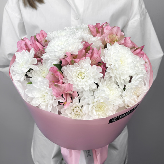 Хризантема кустовая белая, Альстромерия розовая