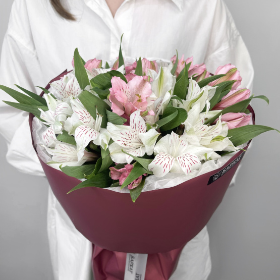 Состав: альстромерия 4 шт., альстромерия 3 шт. Букет из свежих цветов — идеальный способ выразить чувства: ко дню рождения, годовщине, 8 Марта, 14 Февраля, Дню матери, Дню учителя, Дню бабушки и дедушки или просто в знак внимания и заботы. Фирменная открытка-инструкция по хранению — в подарок. Цветочный букет — отличный подарок бабушке, маме, любимой женщине, жене, подруге, сестре, друзьям и коллеге.